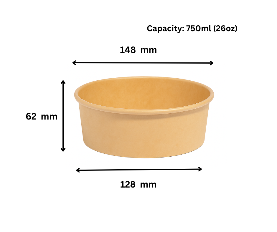 - Choose our 750ml Kraft paper bowls to demonstrate your commitment to sustainability without compromising on quality or performance.