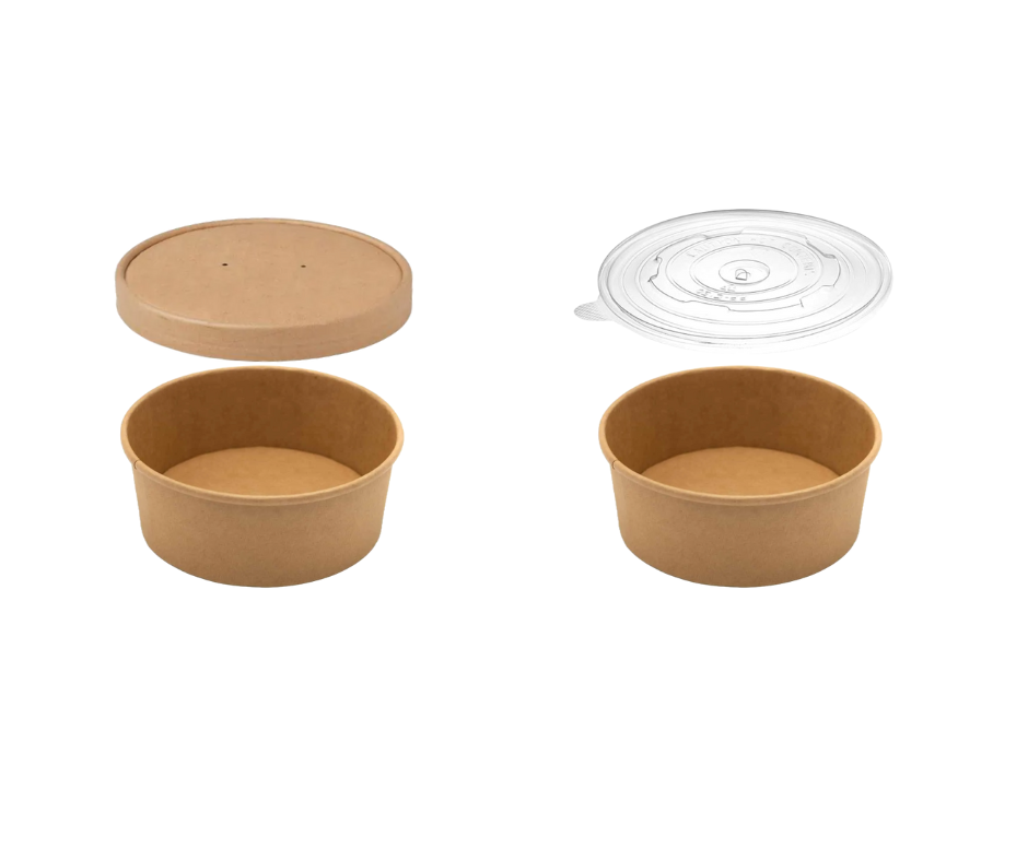 Introducing our versatile set of round Kraft Paper Bowls & Lids! These eco-friendly and sturdy bowls are perfect for a variety of purposes, such as serving soups, salads, desserts, and more. Crafted from premium Kraft paper, these paper food bowls offer exceptional durability and heat resistance. With a choice of Kraft or Clear lids to ensure secure food storage and easy transportation, making them ideal for picnics, parties, and on-the-go meals. With a sleek and modern design, these bowls are perfect for both casual gatherings and formal events.